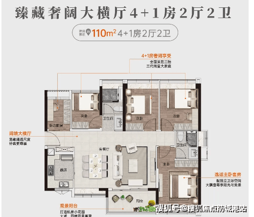 建面约110㎡ 5房2厅2卫户型,打制私人小花圃,业从可享受大城、园林双景。该户型全面满脚三胎家庭或三代同堂大师庭的栖身需求,极致面积做五房,空间操纵率极高;取同区域同户型项目比拟,该户型价钱更具劣势,比同户型价钱省200万摆布,性价比凸起。